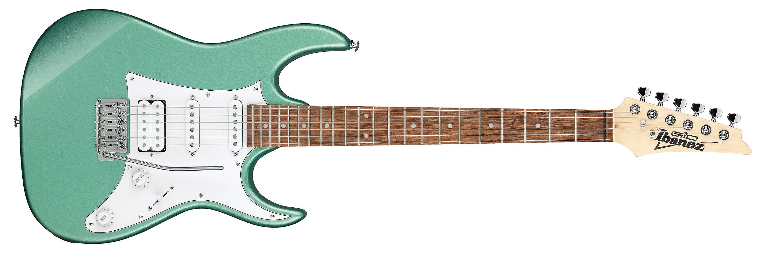Um instrumento não precisa ser caro para ter excelente sonoridade. A série GIO foi desenvolvida para músicos que desejam qualidade e desempenho em uma linha super acessível. Design arrojado, visual atraente, recursos de ponta, para uma performance muito além das demais opções de mesmo custo benefício, com o tradicional padrão de qualidade que você só encontra na Ibanez. Guitarra de 6 cordas Ibanez RG Series modelo RG GIO GRX40-MGN, corpo em Poplar com acabamento Metallic Light Green (Verde Metálico), ponte T106 e captação Infinity. - Construção: Braço parafusado - Corpo: Poplar - Escala: Jatobá com marcação dot inlay branca - Braço: Maple - Tamanho da escala: 25.5" - Trastes: 22 Medium - Ponte: T106 - Hardware: Cromado - Captação: Infinity RS (braço), Infinity RS (meio) e Infinity R (ponte), todos Passivos em Cerâmica - Controles: 1 Volume + 1 Tone + Chave Seletora 5 Posições - Afinação de fábrica: 1E,2B,3G,4D,5A,6E - Calibre das cordas: .009/.011/.016/.024/.032/.042 * Afinação de fábrica e Calibre das cordas informadas apenas como referência ** Especificações sujeitas a alterações sem aviso prévio Escala: 648mm/25.5" a : Largura - 42mm no NUT b : Largura - 57mm no 24F c : Espessura - 19.5mm no 1F d : Espessura - 21.5mm no 12F Raio: 305mmR